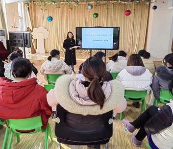 《幼儿园教育指导纲要(试行)》指出 家庭是幼儿园重要的合作伙伴。应本着尊重、平等、合作的原则,争取家长的理解、支持和主动参与,并积极支持、帮助家长提高教育能力。陈鹤琴说:“幼稚教育是一件很复杂的事情,不是家庭一方面可以单独胜任的,也不是幼稚园一方面可以单独胜任的,必定要两方面共同合作方能得到充分的功效”因此为提高教师处理家长工作的能力2022年12月14日中午,对全体教师开展“应对家长工作棘手问题的艺术”的园本培训