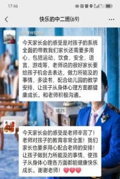 “对话”的实质是平等、民主,教师、家长在平等对话中,教师们进一步倾听了家长们的心声、了解了他们对孩子们的需求;在家长与家长的对话中,互相分享了教育惑和有益经困验;在教师与家长的对话中,碰撞出了科学育儿理念和方式。